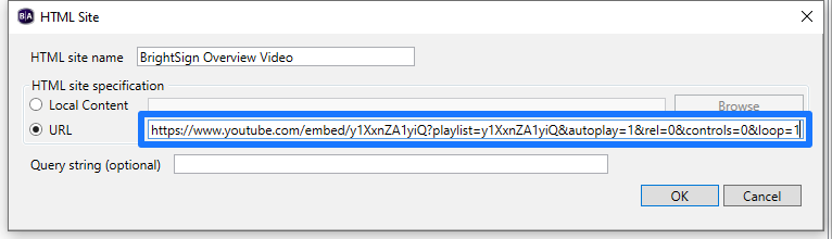 Tenga en cuenta que BrightAuthor no sabe cuándo termina un vídeo de YouTube, por lo que si quiere que se mueva al siguiente estado después de que el vídeo haya terminado, tendrá que establecer el valor de Tiempo en pantalla en un estado HTML5 no interactivo, o poner un evento de Tiempo de espera en un estado HTML5 interactivo para conseguir que se mueva al siguiente elemento si no quiere que el vídeo haga un bucle sin fin o simplemente se quede "atascado" al final del vídeo.